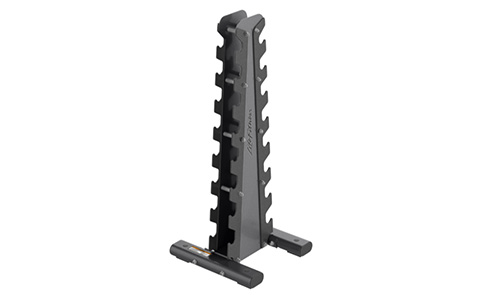 Axiom 系列垂直哑铃架采用节约空间的设计,可存放八对 studio 哑铃(2.5 磅至 20 磅;1 至 8 千克)