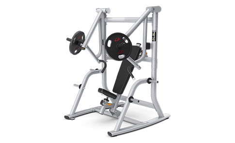 Magnum 坐姿下斜推举椅更全面地锻炼上半身。包括可提供自然运动路径的合式独立臂,允许进行更多类型训练的双握位,可改变运动范围的可调节背垫,以及便于调节的棘轮式座椅。四个铃片储存角勾为杠铃片的储存提供了充足空间。