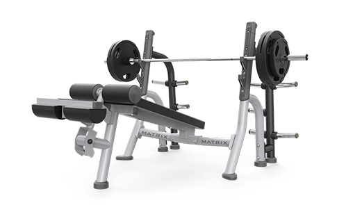 Magnum 奥林匹克下斜椅设计用于增强肌肉活化,同时减轻肩部和下背部受到的压力。旋转式膝垫,可适应各种体型的用户;宽背垫,让用户在举重期间保持稳定。共有 10 个铃片存放角,可为 20.4 千克 / 45 磅的铃片提供存放空间。聚氨酯模压防护层,可保护奥林匹克杆杠免受损坏,降低噪音,并为在旁协助者提供扶手。框架采用专有双涂层工艺,经久耐用。