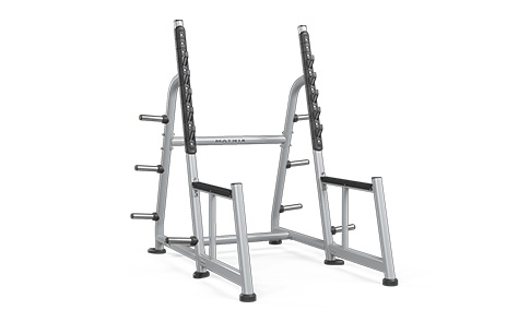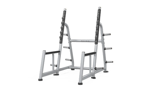 Magnum 深蹲架 具有多个装架位置,可帮助用户实现出色的运动灵活性。它配备八个铃片存放角,为杠铃片的存放提供了充足空间。框架采用专有双涂层工艺,经久耐用。