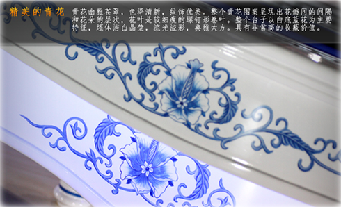 以白底蓝花为主要特征,坯体洁白晶莹,青花幽雅苍翠,色泽清新,纹饰优美。