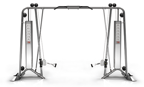 可进行全身性锻炼的综合训练器械,配有两个可调节高低的滑轮组,以及引体向上训练架,满足各类健身人士需求。
