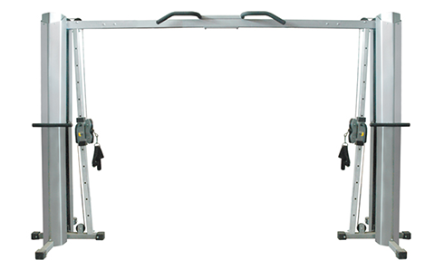 可进行全身性锻炼的综合训练器械,配有两个可调节高低的滑轮组,以及引体向上训练架,满足各类健身人士需求。